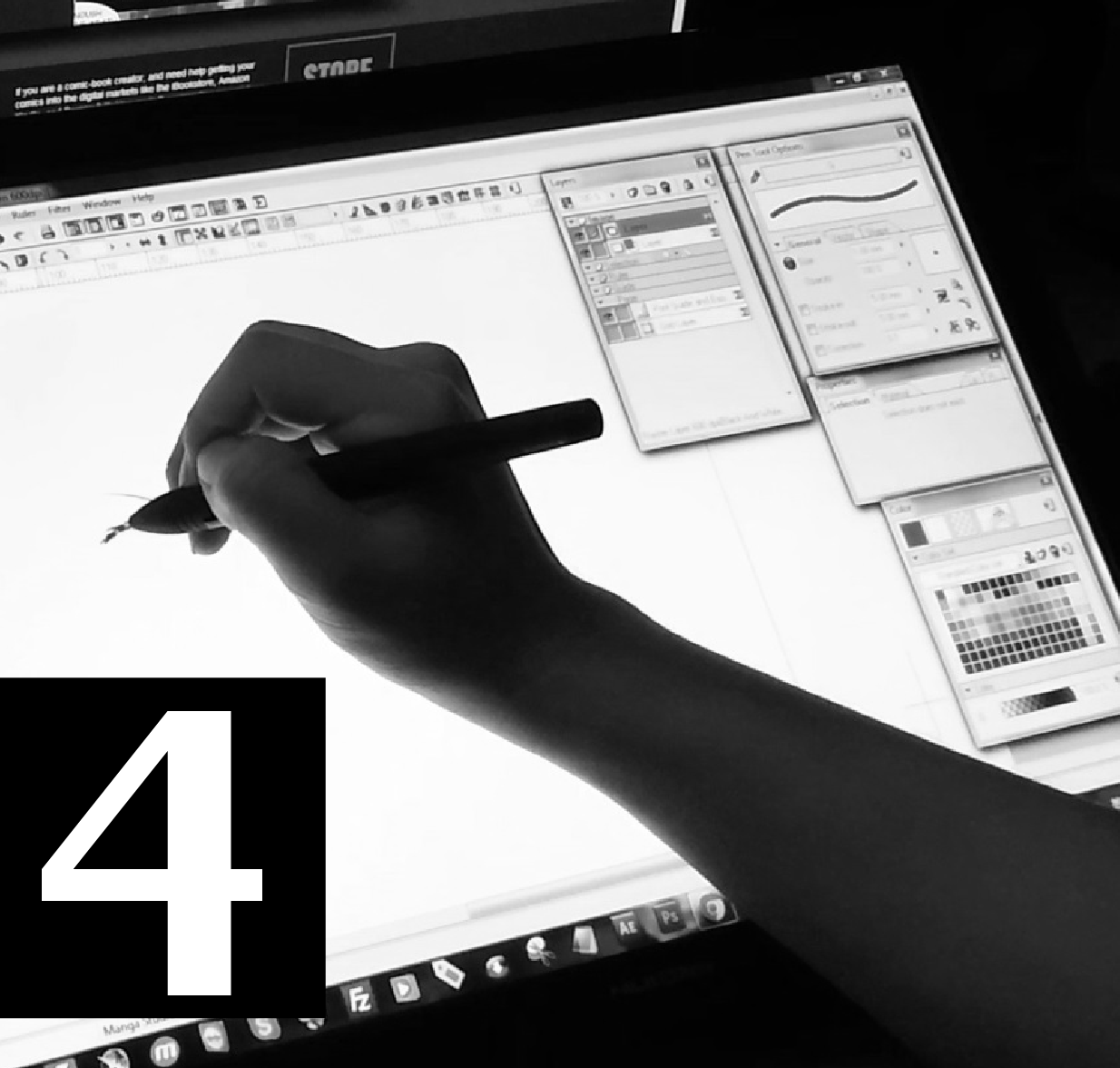 أدوبي فوتوشوب، Corel Painter؛ Comic Studio ، SAI، nfinite Stratos، 3D MAX، أوتوديسك MAYA، Pixologic ZBrush .