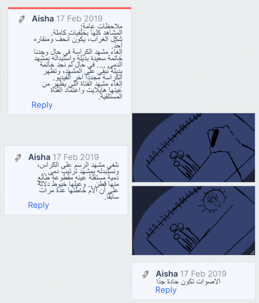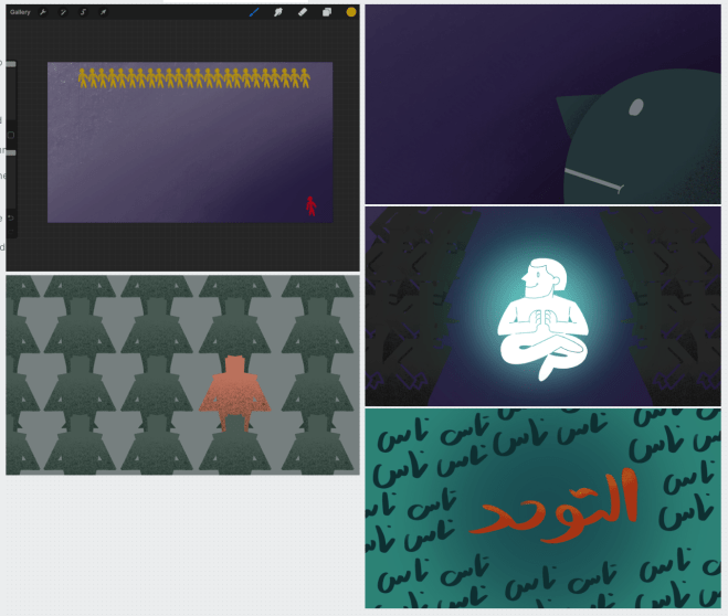 بعدها انتقلنا لمرحلة الرسم illustration وحدة من مراحلي المفضلة، واللي يعني إننا انتهينا من التحضير للفيديو … ويبدأ الانخراط في الانتاج