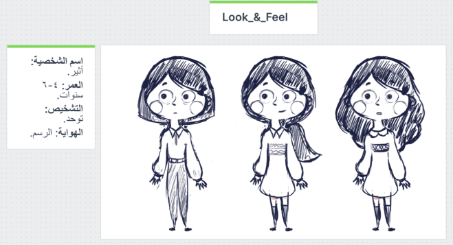 قررنا إننا راح نحتاج شخصية، وتحديدًا فتاة صغيرة … ولأن الفيديو اصبح مرتبط بالأصوات، حبينا إن اسمها يكون أثير (بما يعني الصوت)